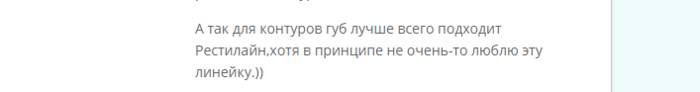 В этом отзыве Рестилайн советует косметолог для того, чтобы создать четкий контур губ. Хотя признается, что не очень любит эту линейку.