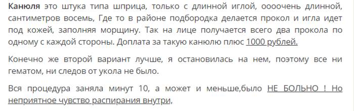В этом отзыве пациентка делится опытом использования Restylane perlane. Говорит, что препарат вводился для поднятия уголков рта. В ходе процедуры использовалась канюля, поэтому было не больно и ощущалось только чувство распирания внутри. Весь процесс длился около 10 минут. После сеанса не было синяков и прочих побочных эффектов.