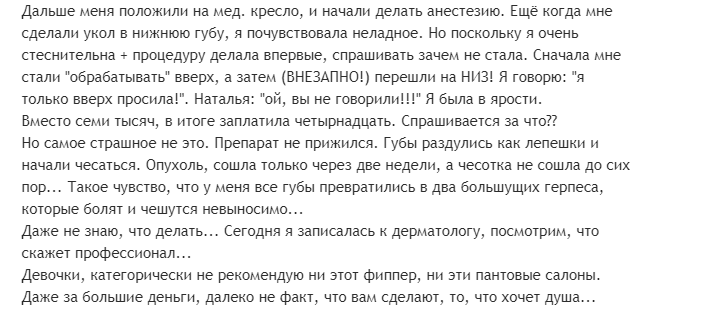 И, конечно, могут быть печальные последствия. Как у девушки из этого отзыва, которая изначально попала в салон с некачественным обслуживанием. Проблемы начались уже в ходе сеанса, когда косметолог начала коррекцию в месте, которое с пациенткой не обсуждалось перед процедурой. Но не это оказалось самым страшным. После введения Рестилайна в губы началось его отторжение. Были сильные отеки, появился герпес и зуд. Restylane не рекомендует категорически.