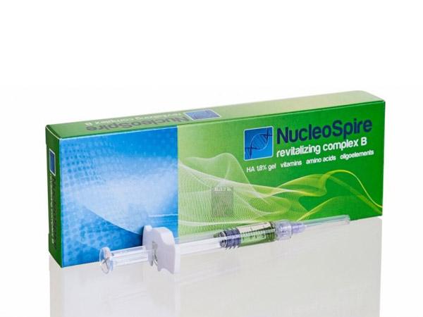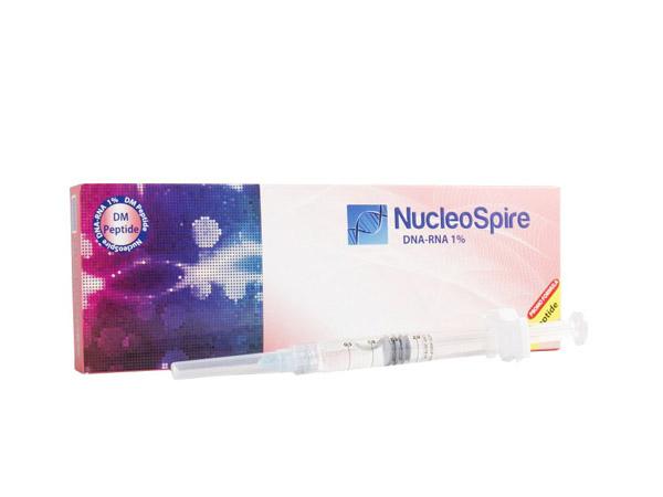 - NucleoSpire DNA-RNA. В составе средства: диметиламониэтанол (ДМАЭ) 2,5%, ДНК-РНК комплекс, гиалуронат натрия, идебенон, аминокислоты, тиоктовая кислота, пептиды, глутатион, витамины С, В5, пантотеновая кислота. Нуклеоспайр dna rna применяется для осветления кожи при гиперпигментации, разглаживания морщин, регенерации тканей при постакне, рубцах. После процедур нормализуется упругость кожи, заметна подтяжка тканей. Нуклеоспайер часто используют для поддержки периорбитальной области.