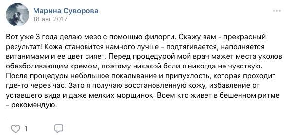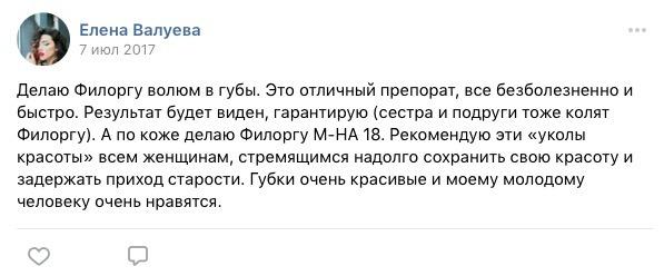 Пациентка пользуется гелями Филорга разного назначения, довольна результатами.
