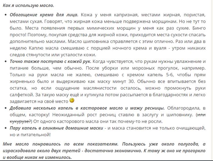 Пользователь описывает использование масла в различных уходовых рецептах.