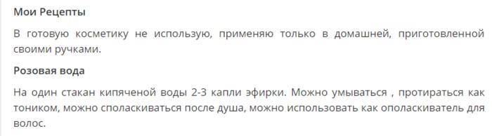 - в чистом виде используется для лечения прыщей, можно обогащать готовые косметические продукты, включая средства декоративного назначения, обогащать домашние рецепты, на 10 мл основы потребует 1–3 капли розового масла;