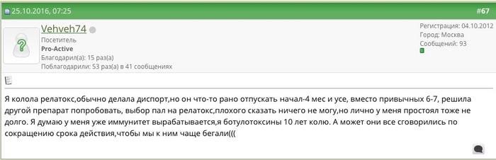 Многие при переходе с Ботокса довольны действием Релатокса.