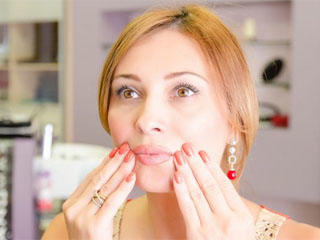 - От носогубных складок: визуально представьте линию от уголка рта к переносице через крылья носа. Массируйте ее круговыми движениями. Повторите упражнение 3 раза, в дальнейшем количество повторений постепенно увеличьте до 10.