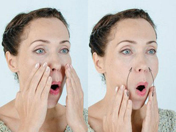 - Ладони положить на щеки, мизинцы — в носогубные складки. Слегка надавливать мизинцами и отпускать, повторить 10 раз.