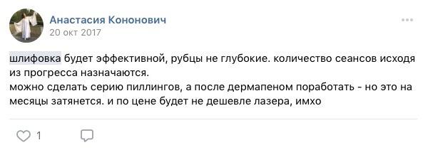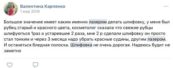 Недостатком шлифовки рубцов лазером признают необходимость неоднократного воздействия.