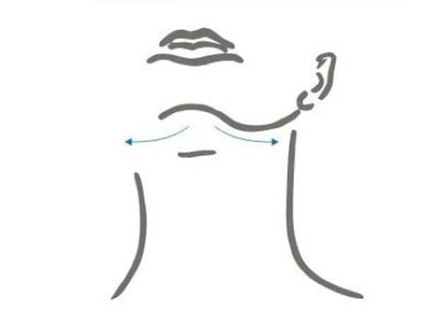 - Располагаем приспособление в центре подбородка и проводим его в сторону мочки уха. Аналогичные манипуляции проделываем с другой частью подбородка.