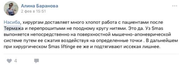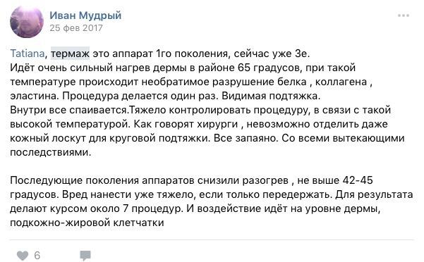 Врач уверен, что добиться стабильных результатов с помощью термажа не получится. Проблемы с внешностью вскоре вернутся, а решить их не получится даже с помощью пластики.
