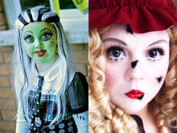 Крупные круглые глаза, румянец на щеках и ниспадающие локоны — характерные черты для кукольного образа юных красавиц. Грим куклы обязательно дополните локонами, украшенными бантом.