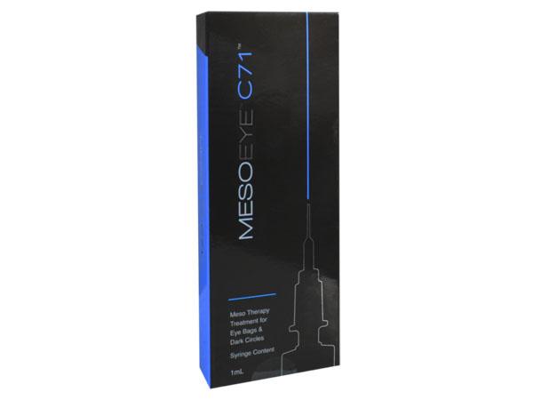 - Mesoeye С71. Подходит только для омоложения области вокруг глаз. Увлажняет кожный покров, укрепляет сосуды, улучшает обмен веществ. Устраняет синяки и морщинки возле глаз. Препарат с пептидами может применяться с 25 лет, но наиболее выраженный результат отмечают женщины в возрасте от 40 лет. Цена — около 5000 рублей.