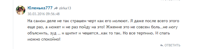 Следующая пациентка рассказывает, что, несмотря на зуд после процедуры, считает реабилитационный период терпимым и собирается пользоваться пилингом в дальнейшем.